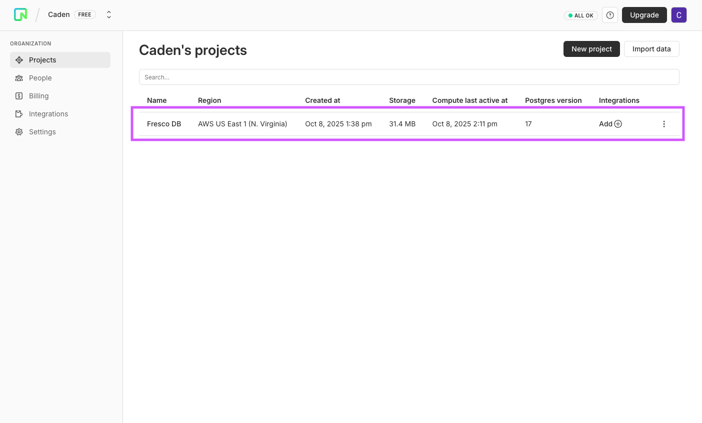 1. Navigate to your Neon dashboard and select your project.